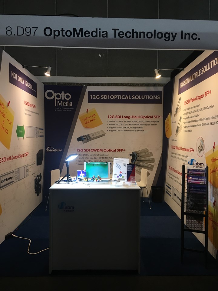 OptoMedia has demonstrated its industry-leading 12G SDI Optical SFP+ up to 40km and newly launched 12G SDI Video Copper SFP+ with BNC / HD-BNC connecter in IBC Amsterdam RAI 2019, one of the most important event for Broadcasting and Audio / Video sector.